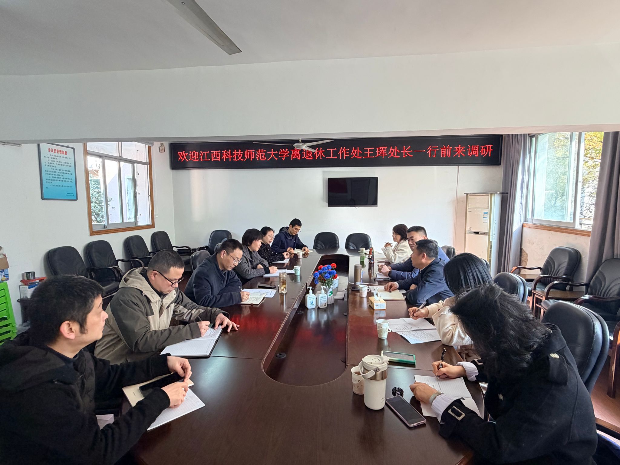 为进一步提升我校离退休工作规范化、精细化服务水平,拓宽工作思路、破解工作难题,近日,离退休党委书记、离退休工作处处长王珲带领离退处工作人员先后前往南昌大学、江西师范大学离退休工作处开展专题调研交流。